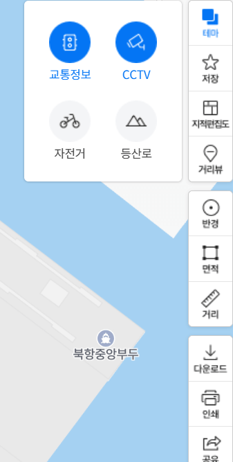 2. 오른쪽 상단에 테마를 클릭후 교통정보 및 cctv를 클릭합니다.