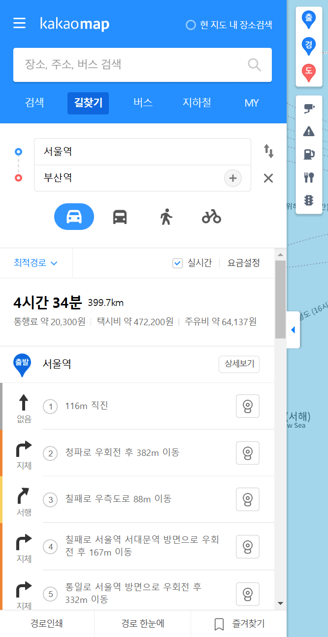 네이버 지도는 실시간 교통 데이터를 기반으로 도로의 혼잡도, 정체 구간, 사고 정보를 빠르게 반영합니다.