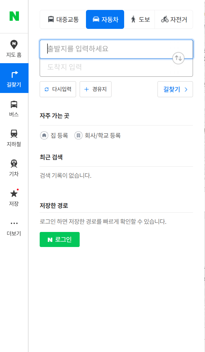 1. 네이버 지도을 켜서 화면 왼쪽에 목적지를 설정합니다.
